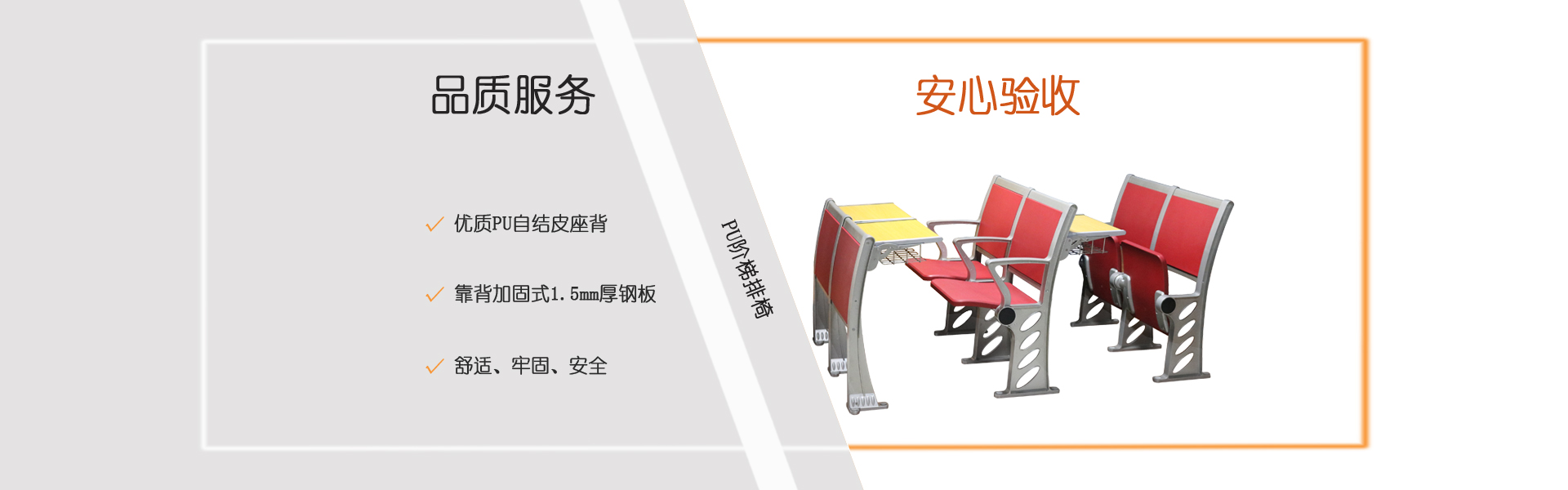 選擇階梯排椅常見的三個注意點:選擇階梯式排椅常見的三個注意點:1、看材質,優(yōu)質多層板和阻燃防火板、膠合板單板選擇一級板材,這樣選擇的板材拼接,無裂縫,無孔洞,周邊罩優(yōu)質聚脂清漆,邊沿整齊平滑,層紋清楚,這樣的板材是比較好的板材。